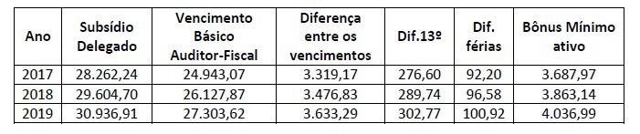 Assim sendo, passamos a comparar os resultados decorrentes da manutenção do subsídio na carreira de policial civil dos antigos territórios (idêntico ao da Polícia Federal) com a nova remuneração do Auditor-Fiscal, através do Bônus de Eficiência Institucional.