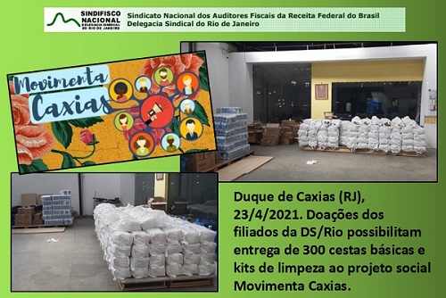 A diretoria da DS/Rio coordenou a entrega, no dia 23 de abril, de 300 cestas básicas ao Movimenta Caxias - projeto social formado por coletivos, voluntários individuais e instituições existentes no município de Duque de Caxias (RJ), que arrecada e distribui alimentos para a população necessitada.