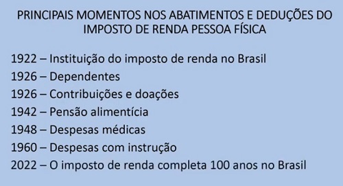 História - Enfatizando sempre que é fundamental "conhecer sua história para aprofundar o conhecimento e o nível do debate", Cristóvão da Nóbrega mostra como "algumas deduções, como despesas médicas e de instrução", permeiam sempre a discussão sobre as alterações tributárias, "chegando a ter defensores da extinção".